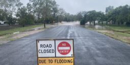 The mayor of an outback community forced to close its hospital, schools and courts due to a flood threat says it's been so wet "even the ducks have left town".