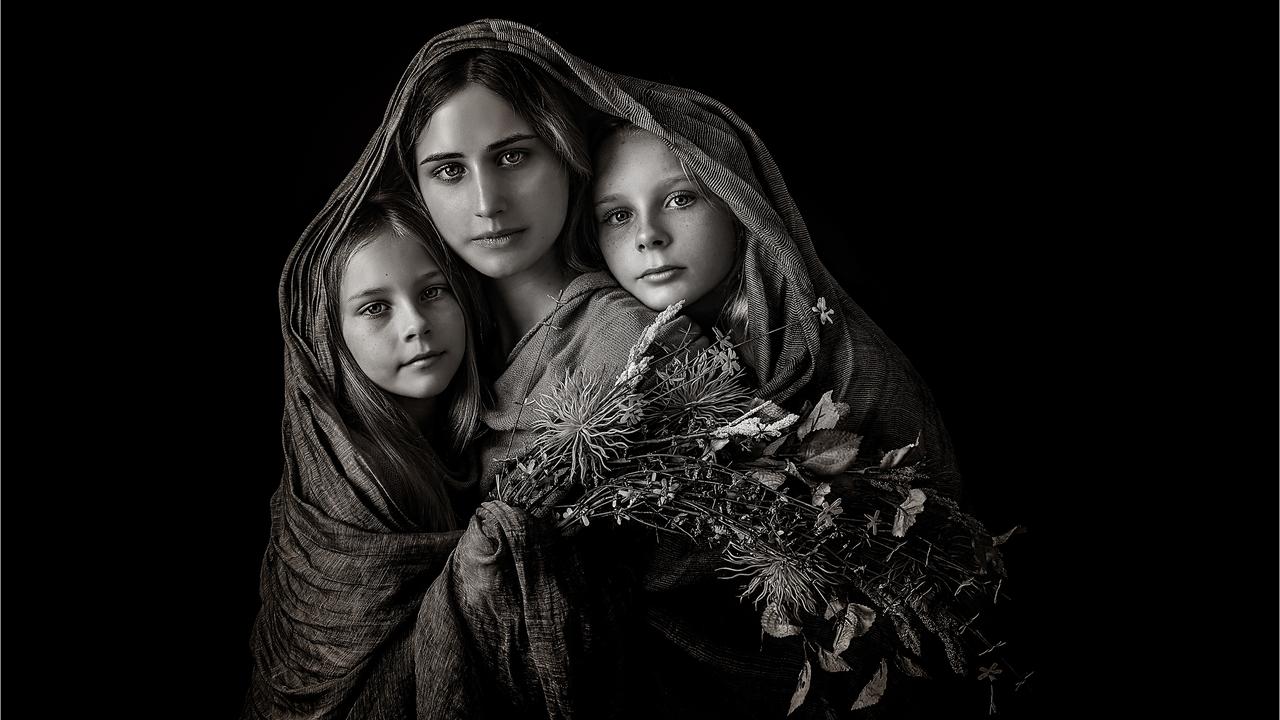An image of three sisters with piercing eyes clustered together under a cloth has won a $15,000 photography prize.