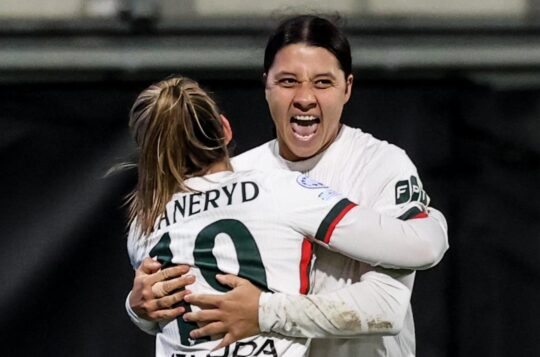 Chelsea are into the quarter-finals of the Women's Champions League after Matildas captain Sam Kerr scored the winner in a comeback 2-1 victory over Wolfsburg.