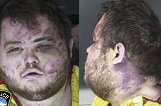 The battered suspect in a mass shooting that killed five people in Colorado Springs has appeared at a court hearing via videolink from jail - in a wheelchair.