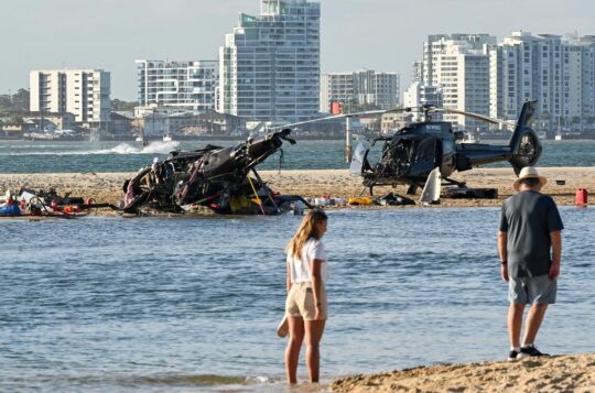 Haunting footage of one of Australia's worst air disasters has been shown at an inquest examining the mid-air collision between two joy flight helicopters.