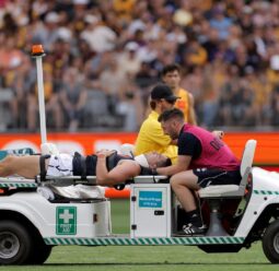 Jacob Weitering has become the first player to suffer an injury during the AFL's State of Origin rebirth, with the Victorian stretchered off in a neck brace.
