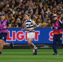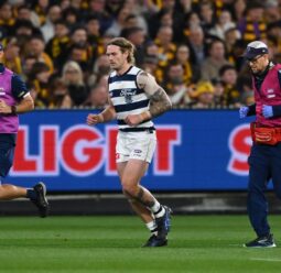 Geelong's Tom Stewart will miss the AFL grand final after he was substituted out of the Cats' win over Hawthorn with concussion.
