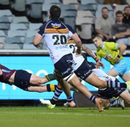 Carter Gordon has scored a post-siren try to end the ACT Brumbies' unbeaten start to the Super Rugby Pacific in a soggy and thrilling contest in Canberra.
