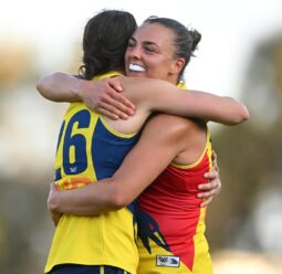 Ebony Marinoff has played a starring role in her record 100th AFLW game as Adelaide shook off a plucky Sydney side in the final quarter to claim victory.