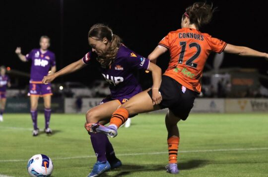 Hana Lowry scored twice in the first half as Perth Glory defeated Brisbane 2-0 at Macedonia Park to climb to sixth on the A-League Women ladder.