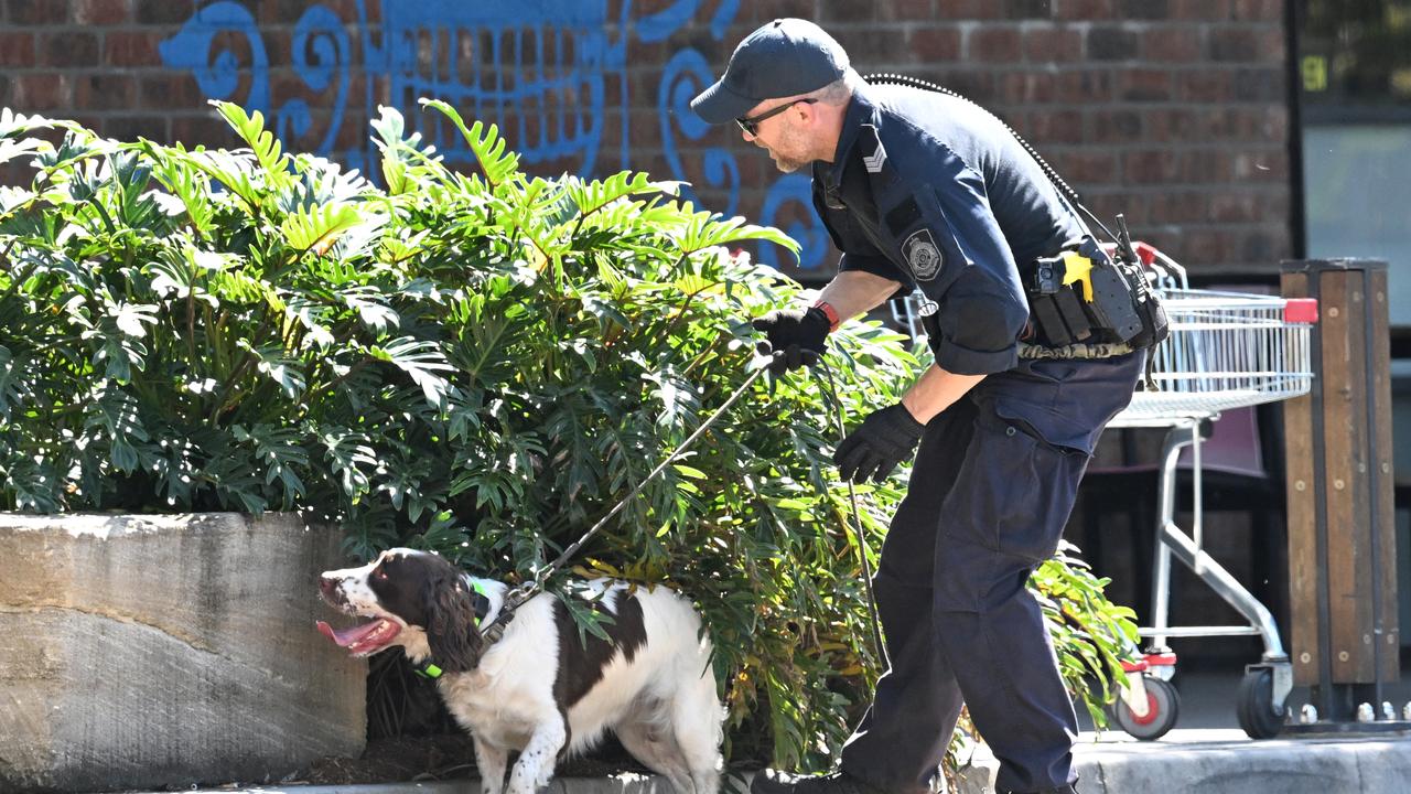 Police launched a sweeping search after cordoning off part of the Foxwell Road shopping centre on the Gold Coast, with a dog squad seen combing the area.