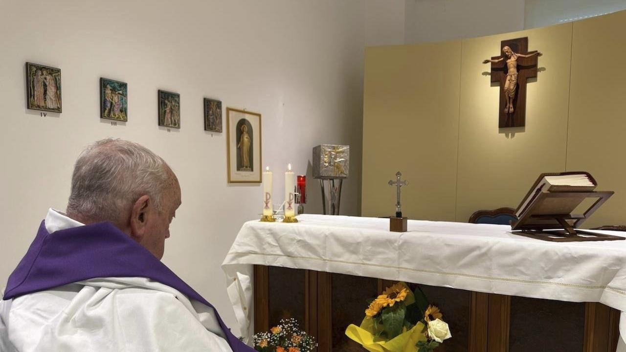 It was at that moment that Francis was photographed on Sunday, from behind, as he sat in his wheelchair before the chapel altar in prayer without any sign of nasal tubes.