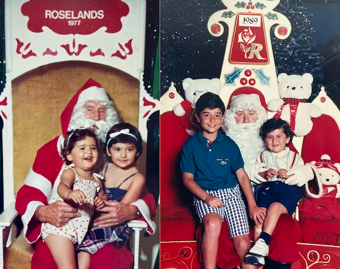 My aunt’s eagerness to recreate this photographic ritual with her children stems from her own childhood posing with Santa. My siblings and I were also photographed every year on Santa’s lap and we continue the ritual with our own kids.