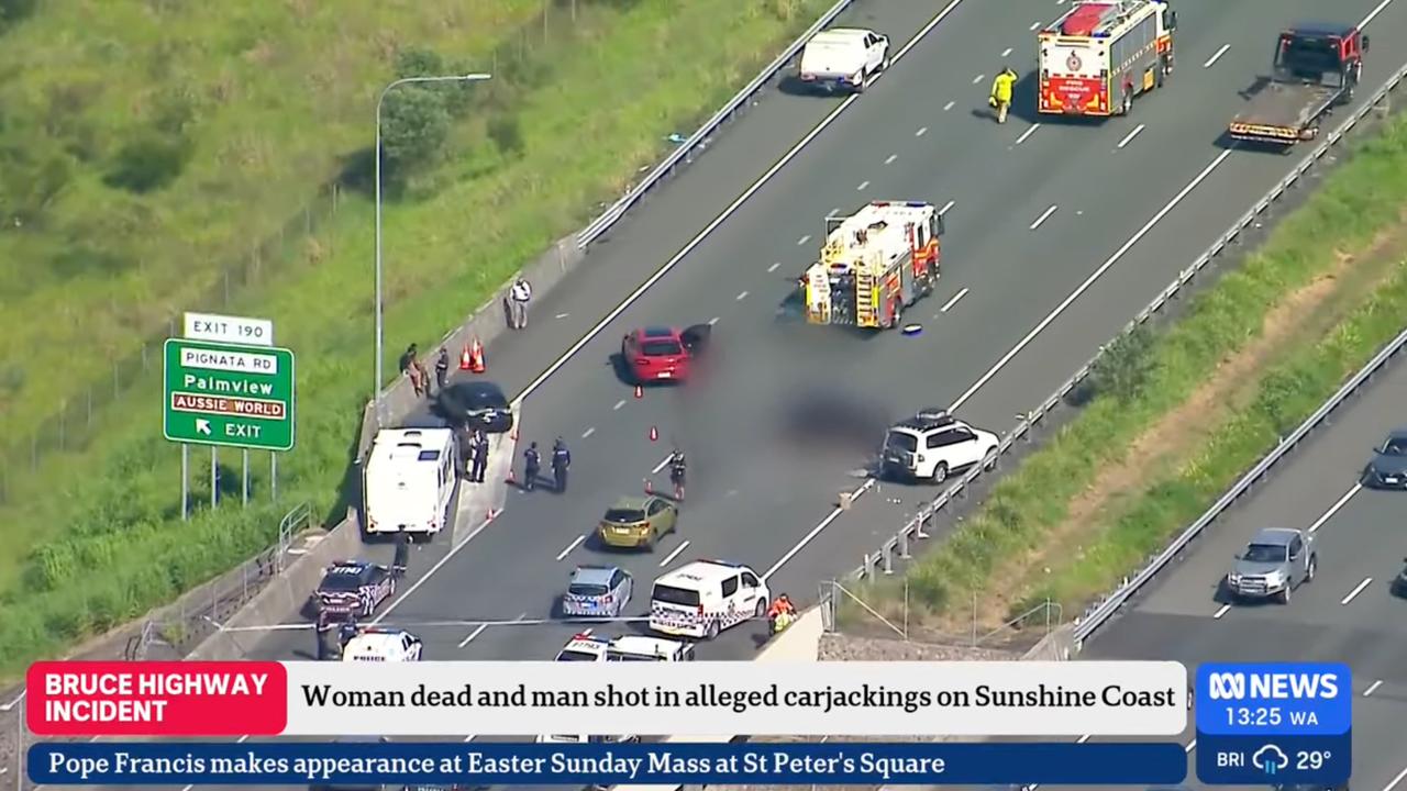 In footage released by police on Tuesday, two officers with guns drawn can be seen approaching a vehicle on a busy Sunshine Coast intersection and screaming at a “bleeding” man to get out.