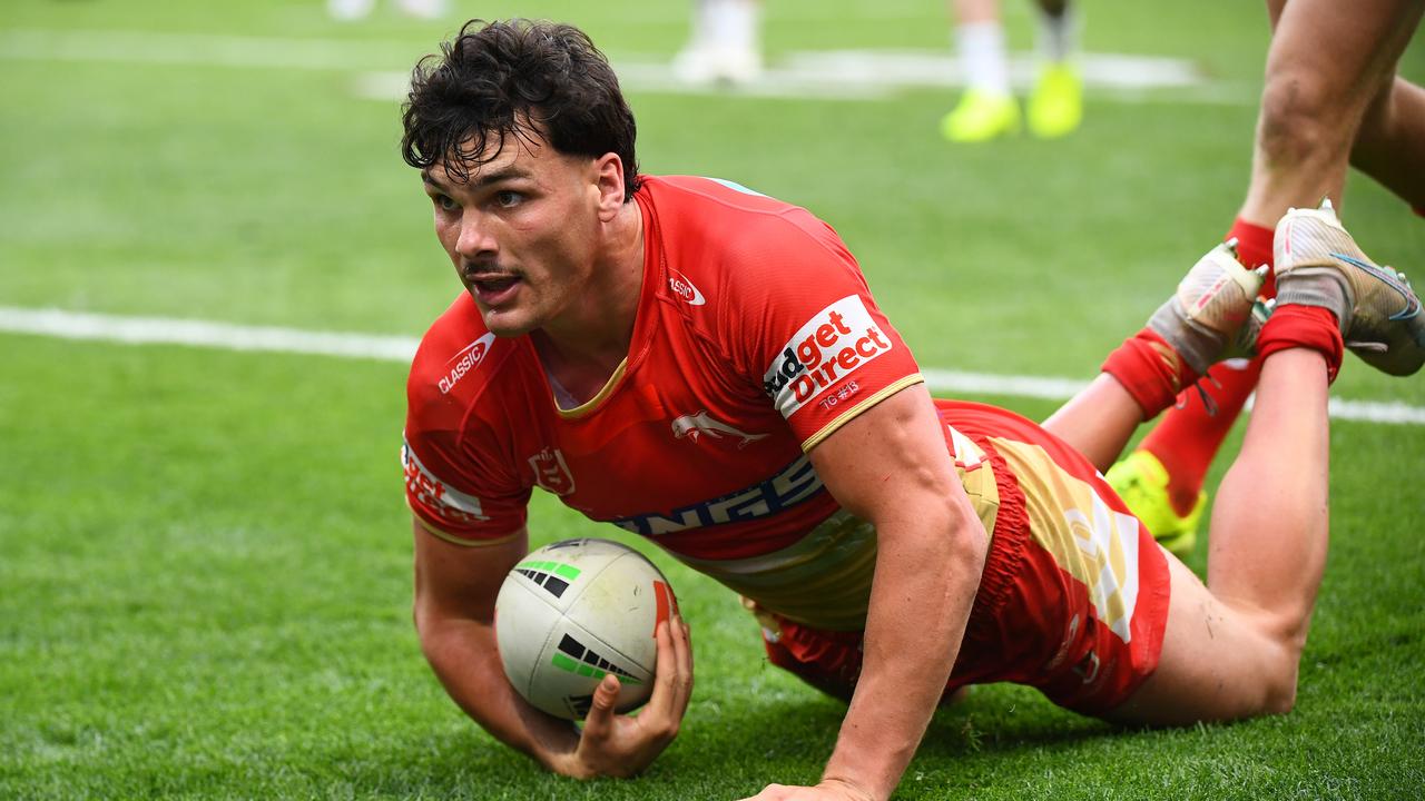 The Dolphins centre not only grabbed the key double but also and set up another for Jack Welsby as the hosts followed up last week’s 34-18 win at Wigan with another six-try display in Leeds on Saturday (Sunday AEDT).