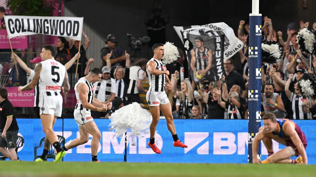 Collingwood looked on from the start, dominating the clearances and stifling Brisbane’s ball movement.