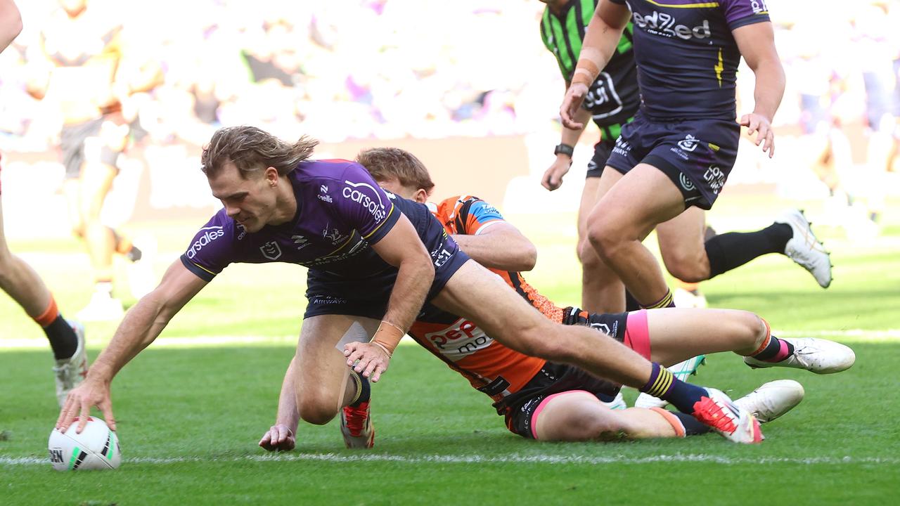 Ryan Papenhuyzen has given NSW State of Origin selectors a timely reminder of his value, helping Melbourne deliver a Mother’s Day massacre with a crushing 64-0 win over a hapless Wests Tigers.