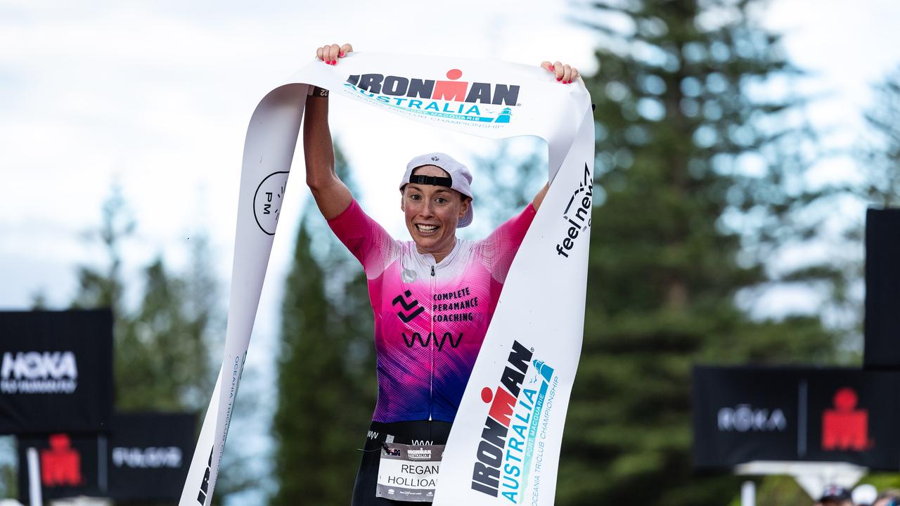 Australian triathlete Regan Hollioake aims to win a fourth Ironman title on Sunday in Cairns.