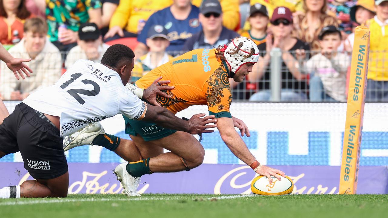 The Wallabies blew a 14-0 lead through inaccuracy and aimless kicking, with playmaker Noah Lolesio opting against sending the ball dead at halftime and instead putting through a dinky kick through that Fiji pounced on for a try.