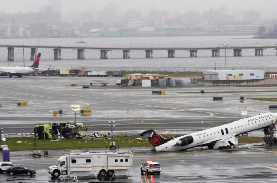 A pilot and co-pilot are dead after an Air Canada regional jet struck a fire truck on the runway while landing at New York's LaGuardia airport.