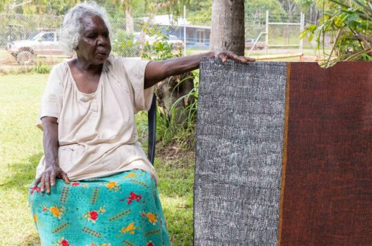 Kaye Brown lost a whole collection of artworks in a truck crash three months ago but the Tiwi artist has kept painting while waiting on an insurance payout.