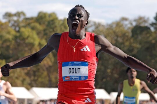 Gout Gout has kicked off his year of 100m racing in style by running 10.00 (+0.9) seconds in Brisbane, equalling the record for an Australian on home soil.