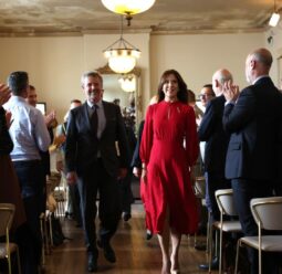 Denmark's Queen Mary has lived out the dream of many Australians, booting a goal at the MCG as she met AFL players during a return to her home nation.
