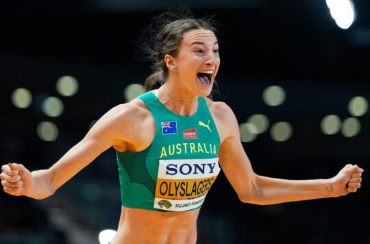Australian high jump ace Nicola Olyslagers has been dethroned as world indoor champion but won silver behind her great Ukrainian rival Yaroslava Mahuchikh.