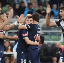 Matt Grimaldi has scored a 91st-minute winner to hand Melbourne Victory a derby triumph over City in front of former coaches Ange Postecoglou and Kevin Muscat.
