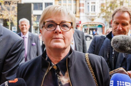 Senator Linda Reynolds has broken down in tears on the stand at her defamation trial with Brittany Higgins about her guilt over Kimberley Kitching's death.