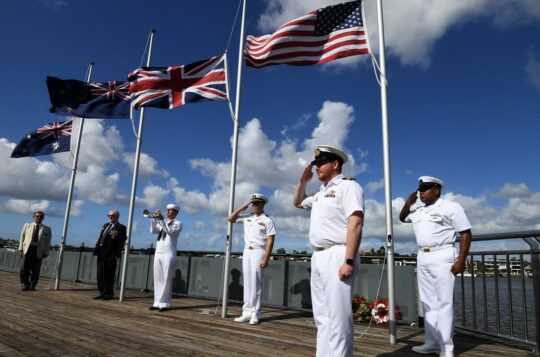 Two of Australia's most senior ministers will meet with their US counterparts as the Albanese government faces calls to withdraw from a major security pact.