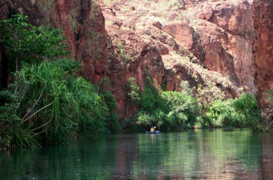 A helicopter rescue crew member says a man is lucky to be alive after a crocodile bit him as he swam in a gorge in a remote Queensland national park.