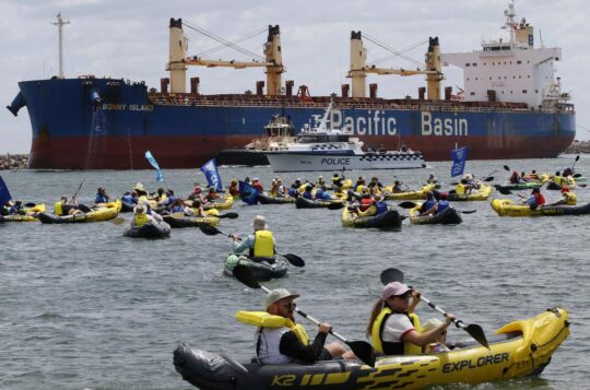 Rising Tide's attempts to blockade the world's largest coal port are continuing, with activists scaling a ship and more arrest made at the Newcastle Harbour.