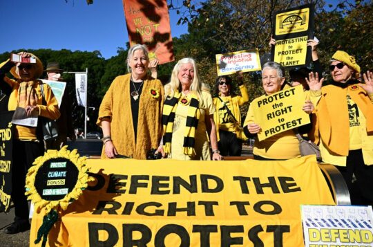 A UN investigator has taken aim at Australia's crackdown on the right to protest as aging climate activists await a court ruling on 'scary' new laws.