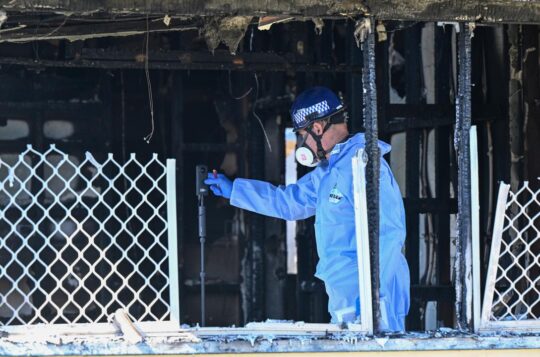 A horrific house fire has killed three children as their mother fights for her life in hospital while police investigate the blaze being treated as suspicious.
