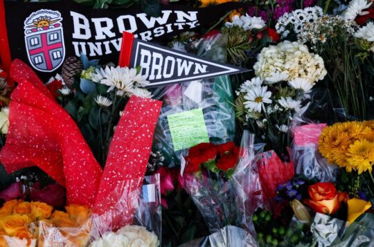 US authorities have released a man and are again searching for a person seen on video walking away from a Brown University shooting that killed two students.