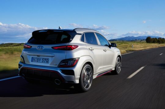 There's a small green button inside this Hyundai Kona which, when pushed, unleashes the full potential of its 206kW and 392Nm.