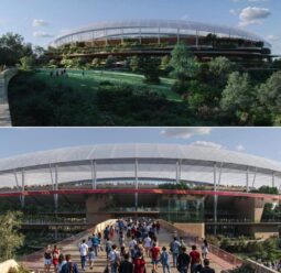The design for Brisbane's new $3.8 billion Olympic stadium has been unveiled, sparking renewed protests from activists seeking to halt the development.