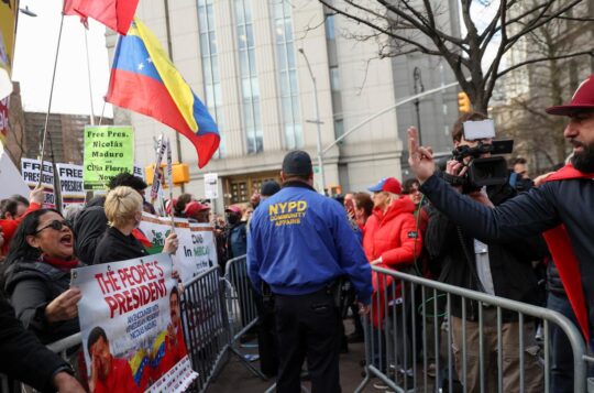 Ex-Venezuelan leader Nicolas Maduro and his wife are in a US courtroom seeking to have their drug trafficking indictments thrown out over a legal fees dispute.