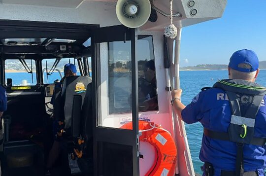 Rescuers battled massive seas to pluck two "extremely lucky" crew members to safety from a yacht stricken off the NSW south coast.
