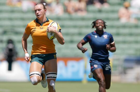 The Australian women have been forced to settle for silver at the Perth Sevens, while the Aussie men claimed bronze in thrilling fashion.