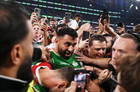 South Sydney players believe it could be unsafe for fans to storm the field if winger Alex Johnston breaks the NRL's try-scoring record.