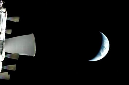 Artemis II zooming to the moon after a day around Earth