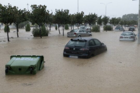 A man is dead and hundreds of houses and roads have been flooded in the Greek port city of Volos following Storm Daniel.